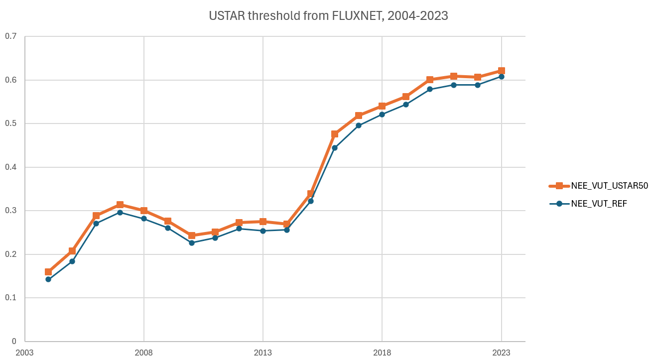 Fig. 1 Results from the FLUXNET USTAR threshold detection, based on data 2004-2023.#